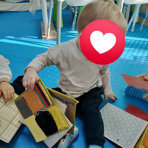 Abbiamo giocato con le cartelle sensoriali per stimolare e sviluppare i sensi del tatto e della vista. I bambini hanno esplorato diversi materiali e superfici, toccandoli e osservandoli con attenzione. Attraverso queste attività, hanno potuto riconoscere differenze di texture, colori e forme, allenando la percezione sensoriale in modo divertente e coinvolgente.